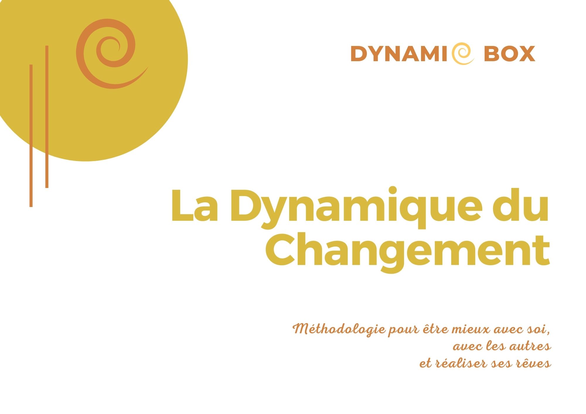 Cette box comprend la méthodologie de 5 mois “La Dynamique du Changement“ au format numérique + 1h de rendez-vous personnalisé avec la conceptrice, Christèle LAGARDE, en cas de besoin.