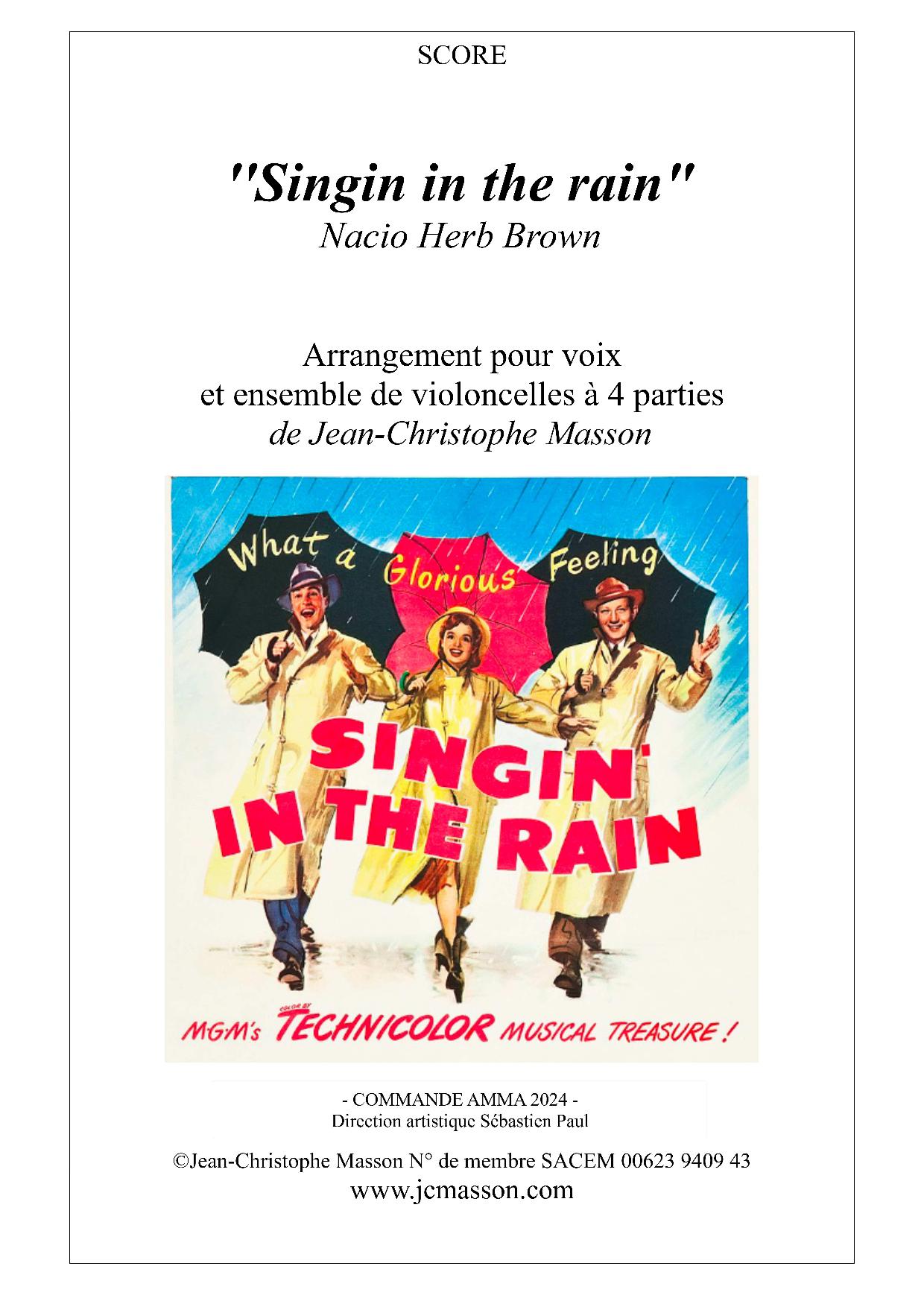 Singin' in the rain N.H Brown, pour voix et ensemble de violoncelles à 4 parties :