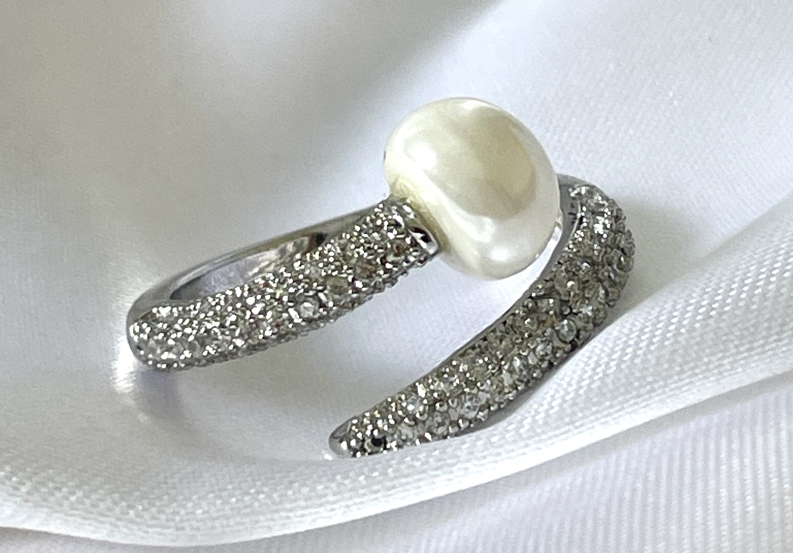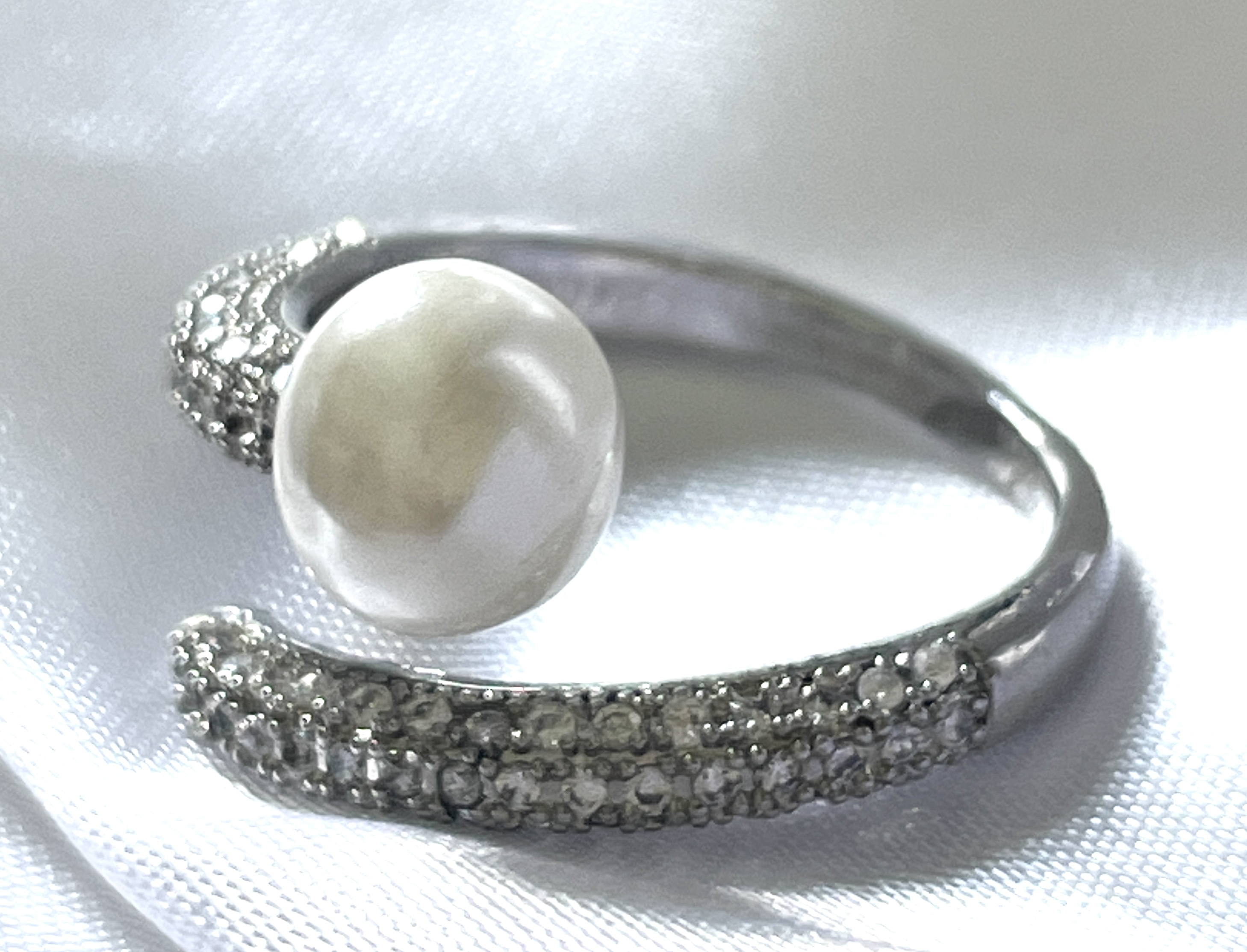Bague en acier inoxydable plaqué platinium sertie d'une perle blanche